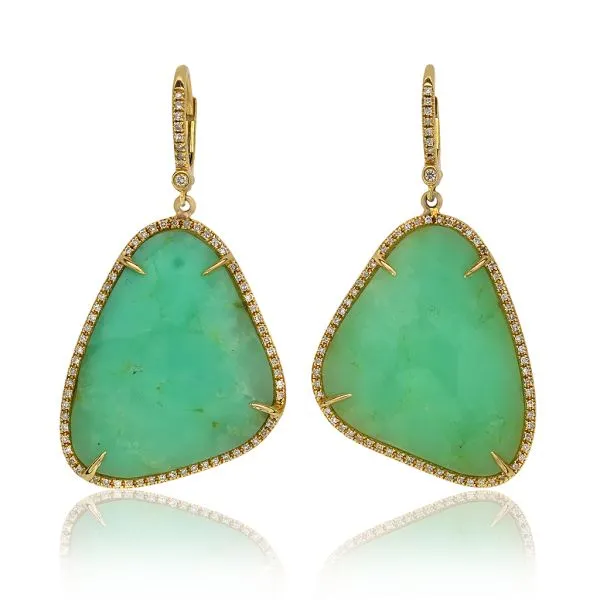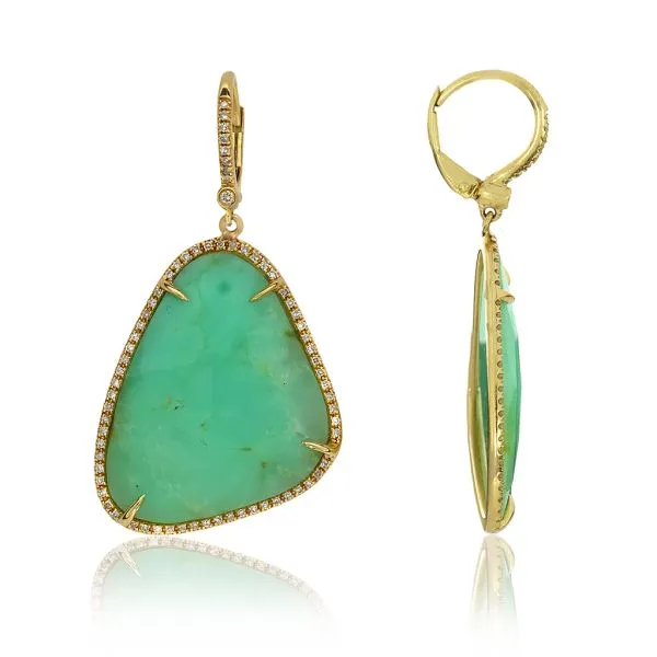 Getana 14K Yellow Gold Chrysocolla Chalcedony and Diamond Halo Earrings Image 2 Purple Creek Holly Springs, NC