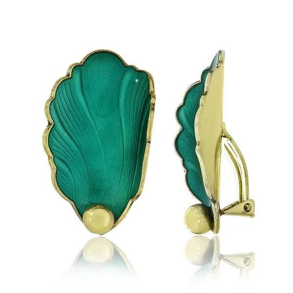 Hans Myhre Vintage Norway Concave Green Guilloche Enamel Sterling Earrings Image 4 Purple Creek Holly Springs, NC