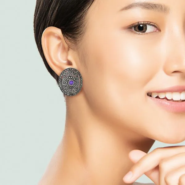 Judith Jack Vintage Sterling Silver Amethyst & Marcasite Earrings Image 2 Purple Creek Holly Springs, NC