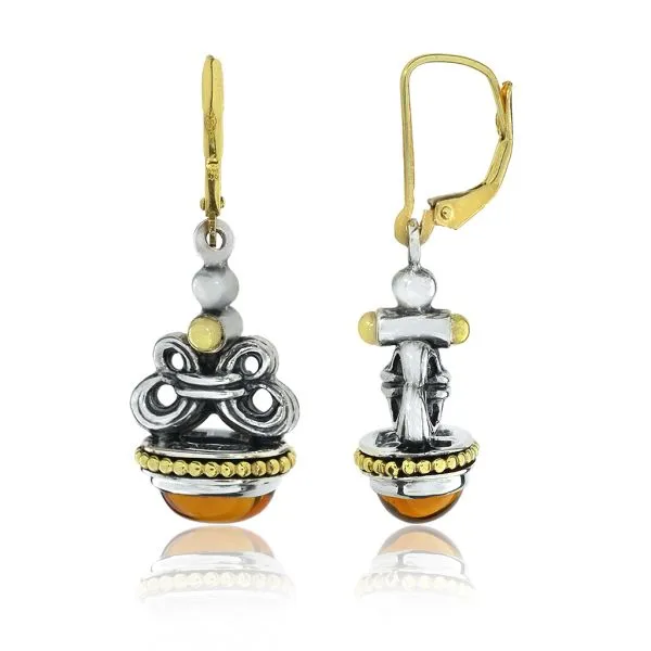 Lagos Caviar Vintage 18K Yellow Gold and Sterling Silver Citrine Dangle Earrings Image 3 Purple Creek Holly Springs, NC