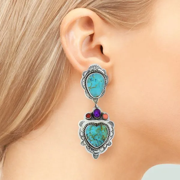 Native American Sterling Silver Turquoise Stamped Dangle Earrings Image 2 Purple Creek Holly Springs, NC