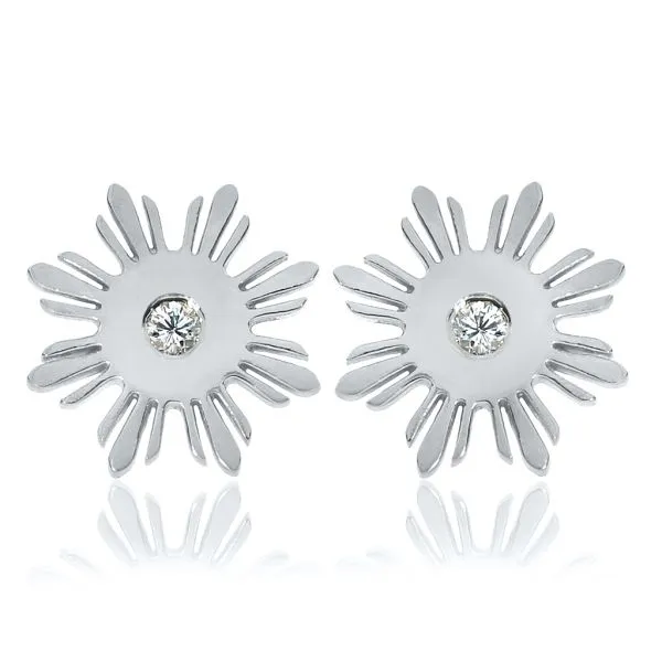Purple Creek Custom 18K White Gold .06ctw Natural Diamond Philippines Sun Earrings