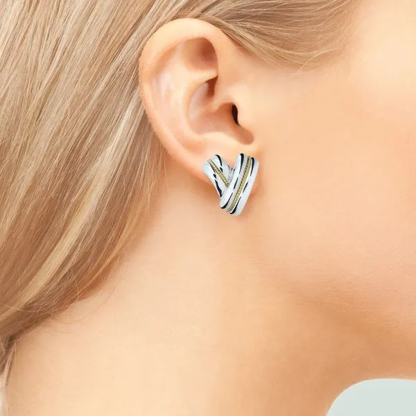 Tiffany & Co 14K Yellow Gold & Sterling Silver V Earrings