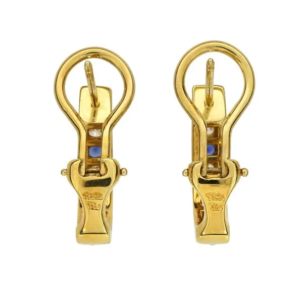 Tiffany & Co. 18K Yellow Gold Alternating Diamond and Blue Sapphire Omega Back Earrings