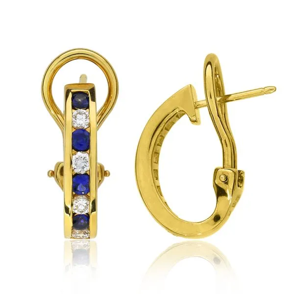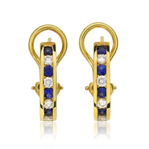 Tiffany & Co. 18K Yellow Gold Alternating Diamond and Blue Sapphire Omega Back Earrings Image 2 Purple Creek Holly Springs, NC