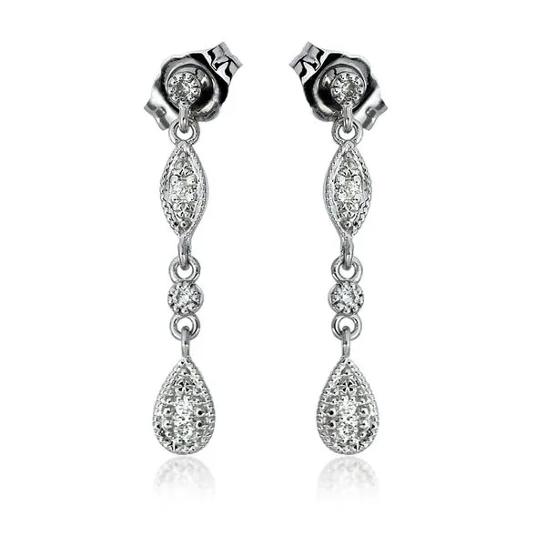 Vintage 14K White Gold Natural Diamond Milgrain Dangle Earrings Image 2 Purple Creek Holly Springs, NC