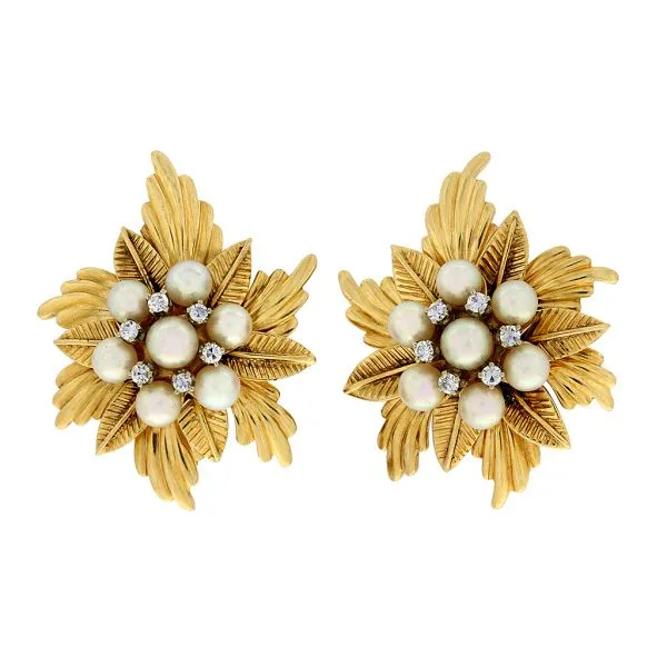 Vintage 14K Yellow Gold Pearl & Natural Diamond Clip On Earrings Image 3 Purple Creek Holly Springs, NC