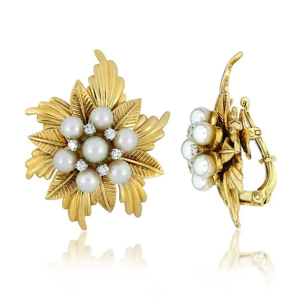 Vintage 14K Yellow Gold Pearl & Natural Diamond Clip On Earrings Image 4 Purple Creek Holly Springs, NC