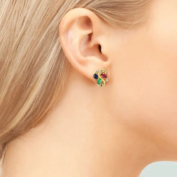 Vintage 14K Yellow Gold Ruby, Sapphire, Emerald & Natural Diamond Earrings Image 2 Purple Creek Holly Springs, NC