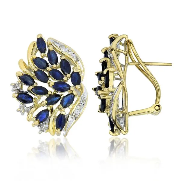 Vintage 14K Yellow Gold Sapphire & Natural Diamond Cluster Earrings Image 2 Purple Creek Holly Springs, NC