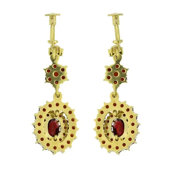 Vintage 18K Yellow Gold 6.02ctw Garnet Teardrop Dangle Earrings Image 3 Purple Creek Holly Springs, NC