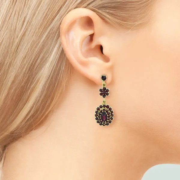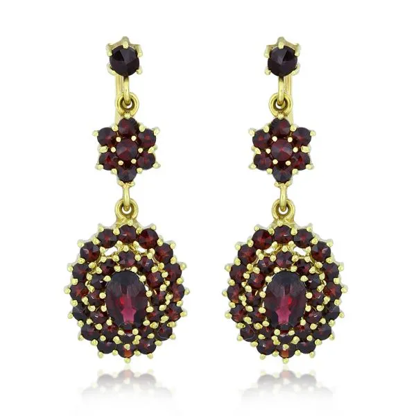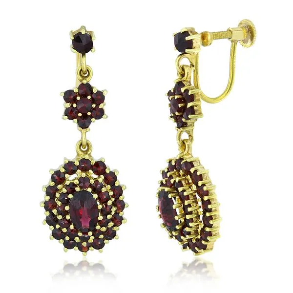 Vintage 18K Yellow Gold 6.02ctw Garnet Teardrop Dangle Earrings Image 2 Purple Creek Holly Springs, NC