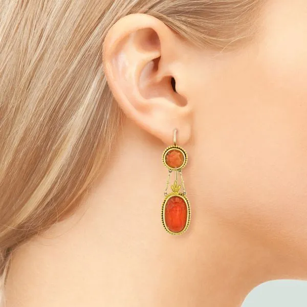 Vintage 18K Yellow Gold Coral Cameo Dangle Earrings