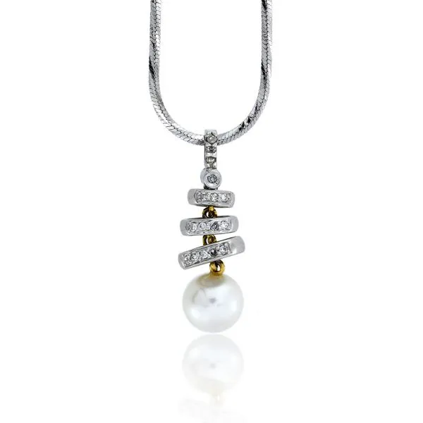 14K White Gold 18" Square Snake Necklace with Pearl & Natural Diamond Pendant Purple Creek Holly Springs, NC