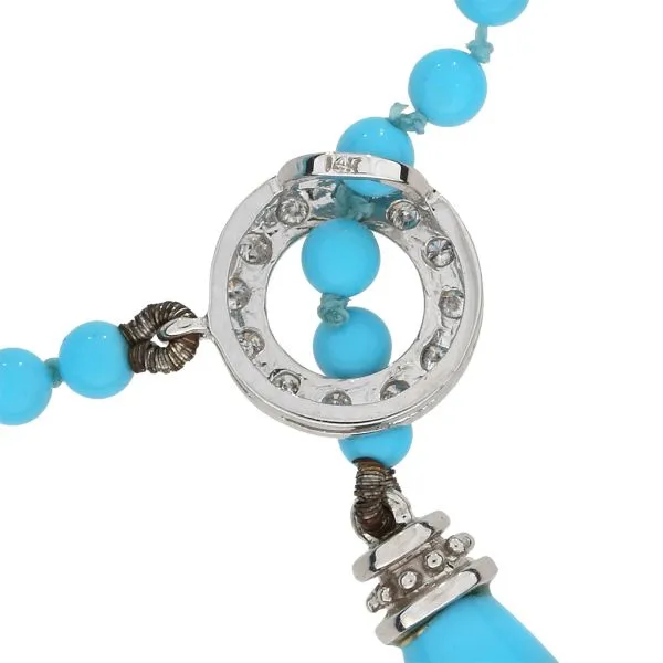 14K White Gold .18ctw Diamond and Turquoise Hand Knotted 24" Lariat Necklace