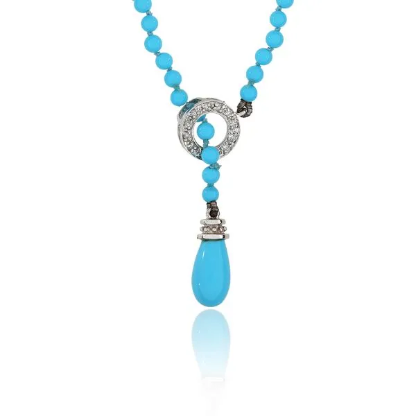 14K White Gold .18ctw Diamond and Turquoise Hand Knotted 24" Lariat Necklace Image 2 Purple Creek Holly Springs, NC