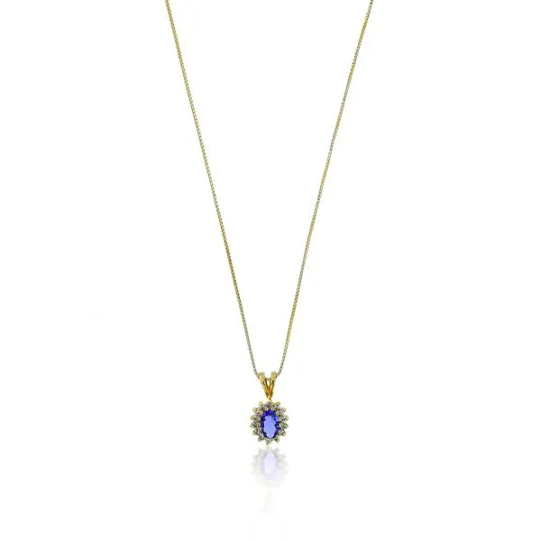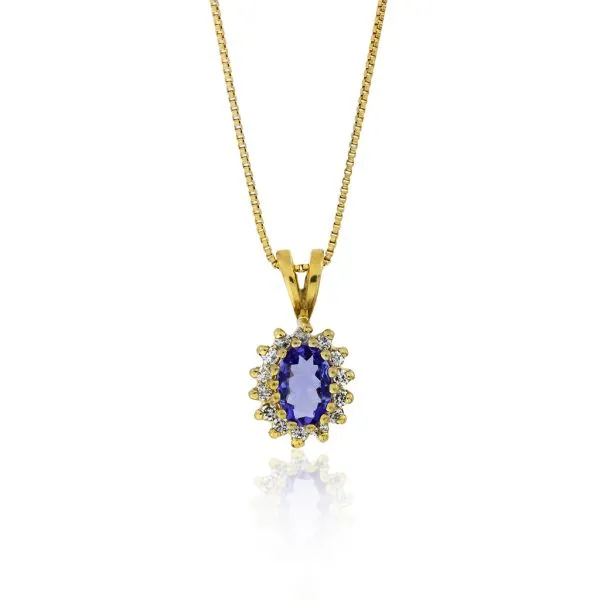14K Yellow Gold 17 3/4" Box Necklace with Tanzanite & Natural Diamond Halo Pendant Image 5 Purple Creek Holly Springs, NC