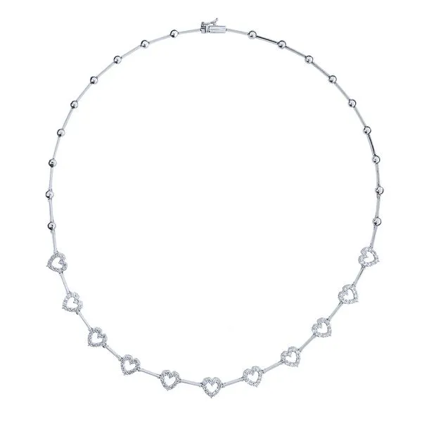 18K White Gold 2.24ctw Natural Diamond 16 1/4" Inline Heart Necklace Image 2 Purple Creek Holly Springs, NC