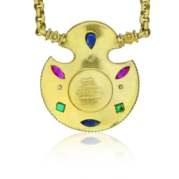 18K Yellow Gold 17" Greek Necklace and Pendant with Natural Diamonds Sapphires Ruby and Emerald Image 4 Purple Creek Holly Springs, NC