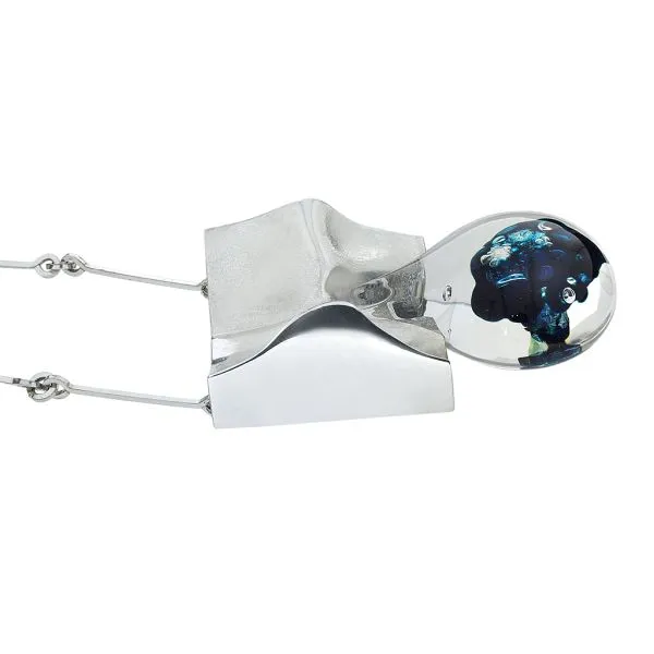 Bjorn Weckstrom for Lapponia Finland 1970's Acrylic Big Drop Space Series Sterling Necklace
