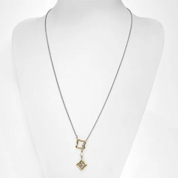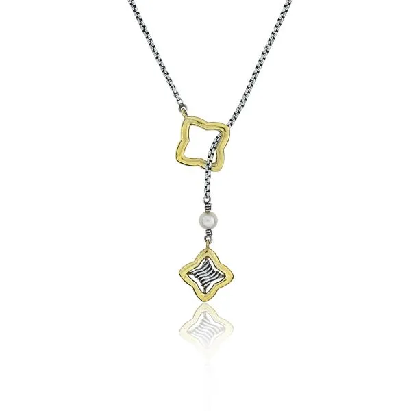 David Yurman 18K Yellow Gold and Sterling Quatrefoil with Pearl Box Chain 24" Lariat Necklace Image 2 Purple Creek Holly Springs, NC