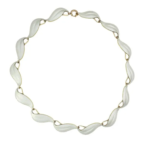 Finn Jensen Vintage Norway Designed 16 1/2" White Guilloche Enamel Leaf Sterling Silver Necklace Purple Creek Holly Springs, NC