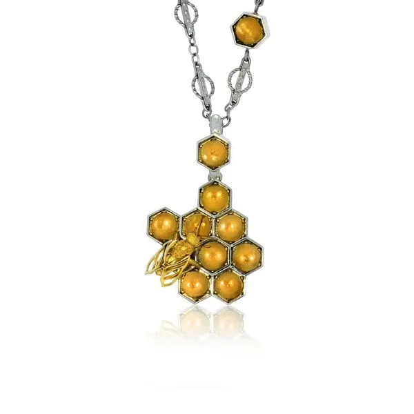 Purple Creek Custom 18K Yellow Gold & Sterling Bee Comb Necklace Image 2 Purple Creek Holly Springs, NC