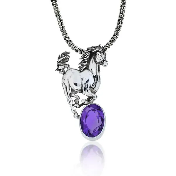 Sterling Silver 11.62ct Amethyst Figural Horse Pendant on a 16" Necklace Image 2 Purple Creek Holly Springs, NC