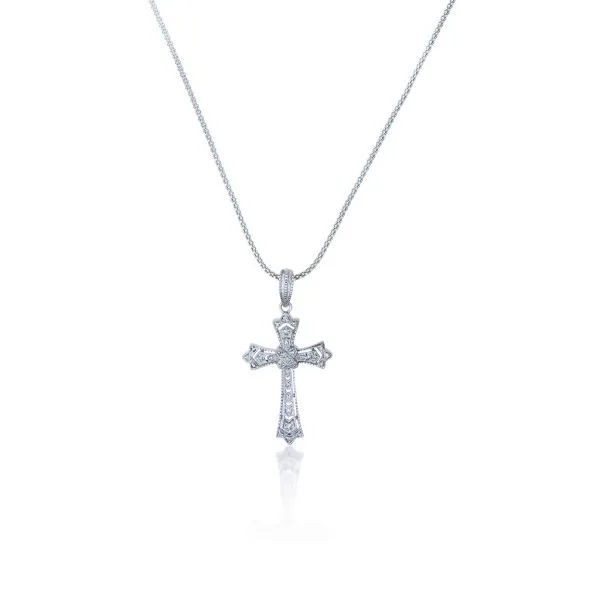 Sterling Silver .24ctw Diamond Milgrain Cross on a 17" Puff Chain Necklace Purple Creek Holly Springs, NC