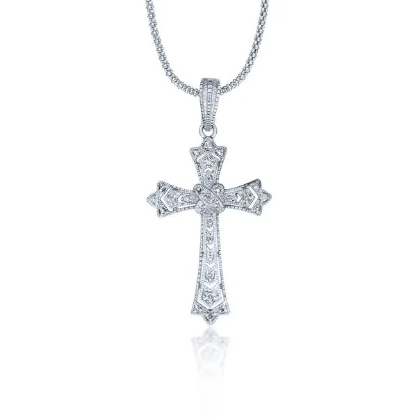Sterling Silver .24ctw Diamond Milgrain Cross on a 17" Puff Chain Necklace Image 2 Purple Creek Holly Springs, NC