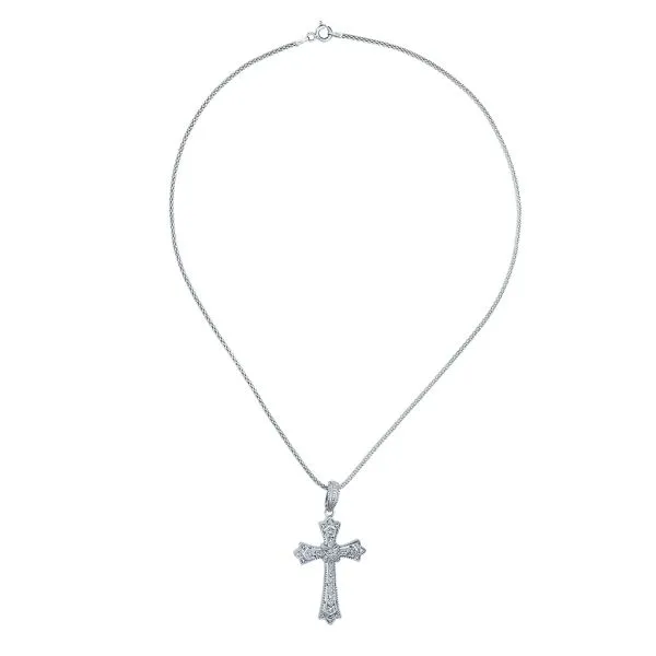 Sterling Silver .24ctw Diamond Milgrain Cross on a 17" Puff Chain Necklace Image 5 Purple Creek Holly Springs, NC