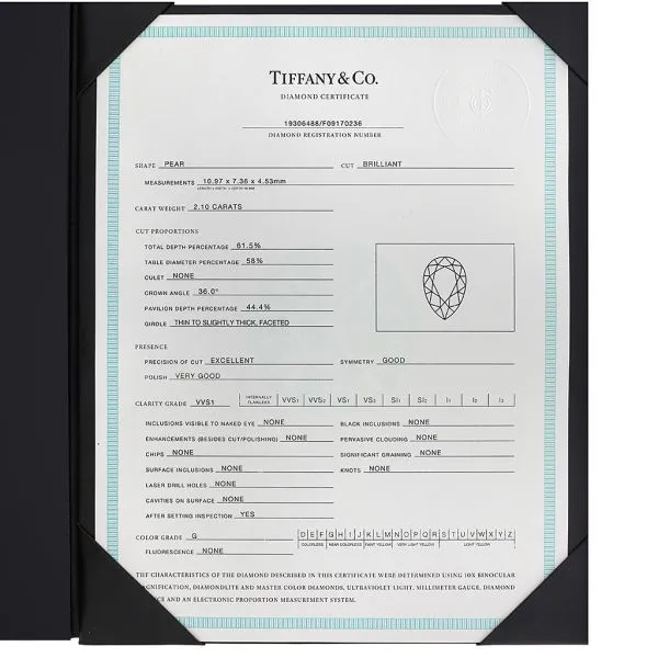 Tiffany & Co 950 Signature Platinum 2.10ct Pear Solitaire Diamond Pendant 18" Necklace with GIA Report Image 5 Purple Creek Holly Springs, NC