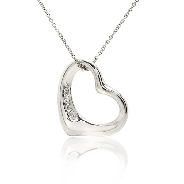 Tiffany & Co Platinum .05ctw Natural Diamond Elsa Peretti Open Heart Pendant 16" Necklace Image 2 Purple Creek Holly Springs, NC