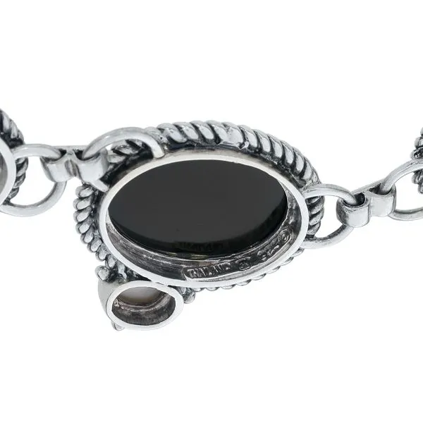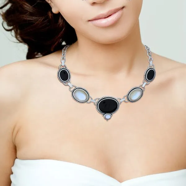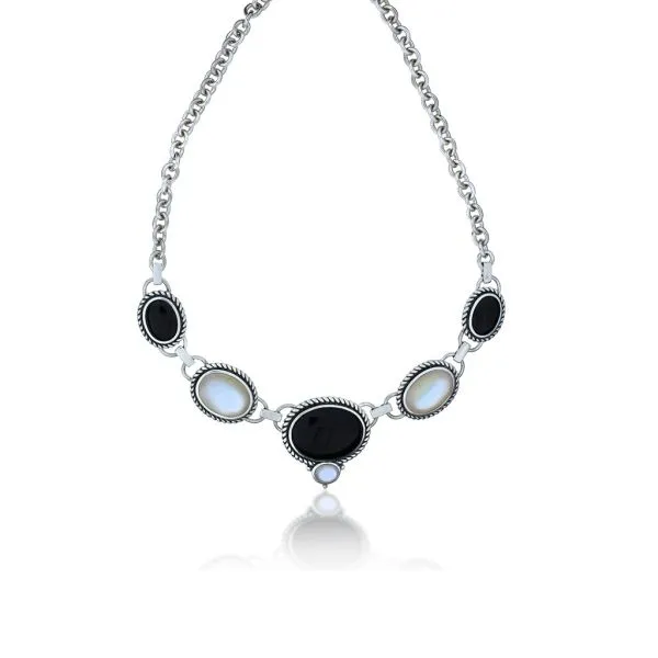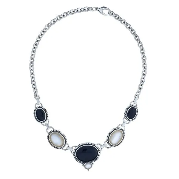 Vintage Sterling Silver Black Onyx & Mother of Pearl 17 1/2" Necklace