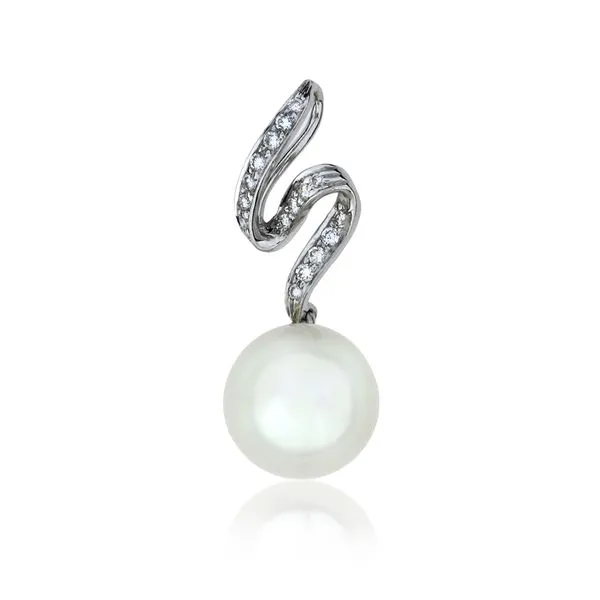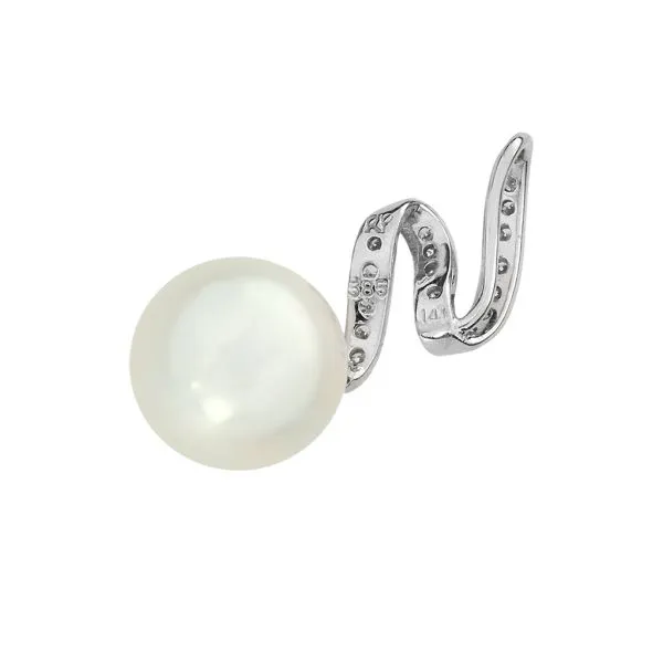14K White Gold 9.8mm Akoya Pearl & Natural Diamond Pendant Image 3 Purple Creek Holly Springs, NC