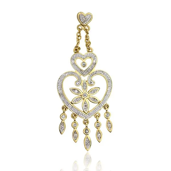 14K Yellow and White Gold .11ctw Natural Diamond Chandelier Flourish Pendant Image 2 Purple Creek Holly Springs, NC