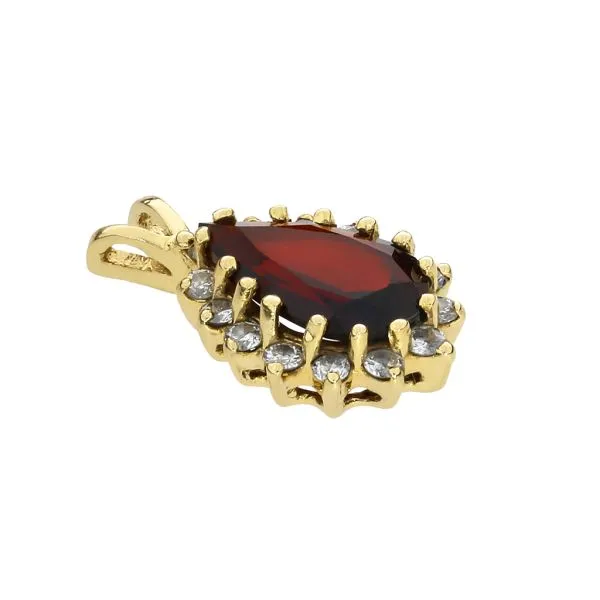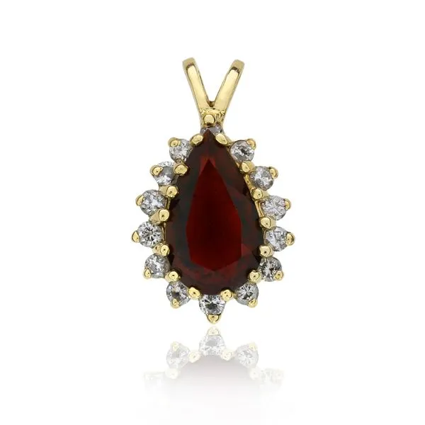14K Yellow Gold 3.20ct Pear Garnet with a .42ctw Diamond Halo Pendant Image 2 Purple Creek Holly Springs, NC