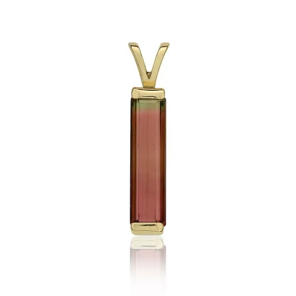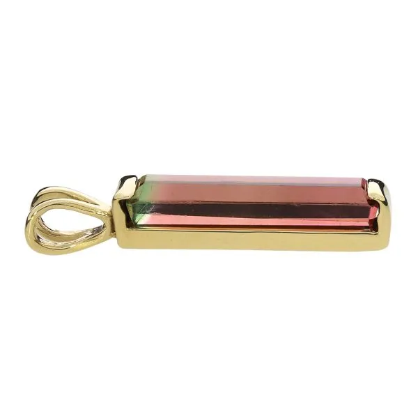 14K Yellow Gold 4.34ct Bi-Colored Elongated Pink Tourmaline Pendant