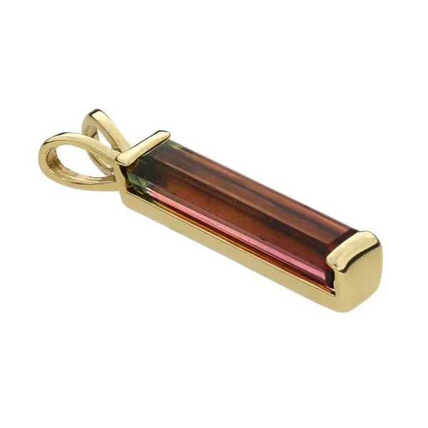 14K Yellow Gold 4.34ct Bi-Colored Elongated Pink Tourmaline Pendant Image 2 Purple Creek Holly Springs, NC