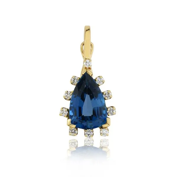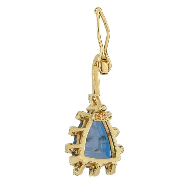 14K Yellow Gold 4.67ct London Blue Topaz with Diamond Halo Pendant Image 3 Purple Creek Holly Springs, NC