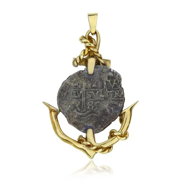 14K Yellow Gold Anchor Bezel with Sterling 1689 1 Reales Cobb Coin Pendant