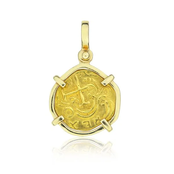 14K Yellow Gold Bezel with 24K 1 Escudo Spanish Colony Cobb Coin Pendant Image 2 Purple Creek Holly Springs, NC