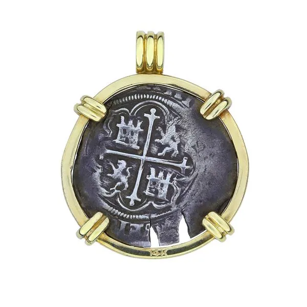 14K Yellow Gold Bezel with Sterling 1 Reales 1556-1598 Cobb Coin Pendant Image 2 Purple Creek Holly Springs, NC