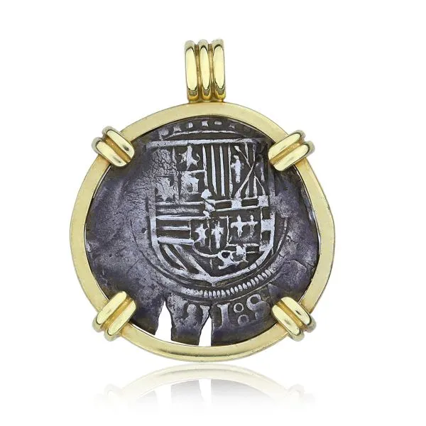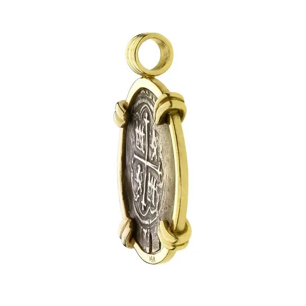 14K Yellow Gold Bezel with Sterling 1 Reales 1556-1598 Cobb Coin Pendant