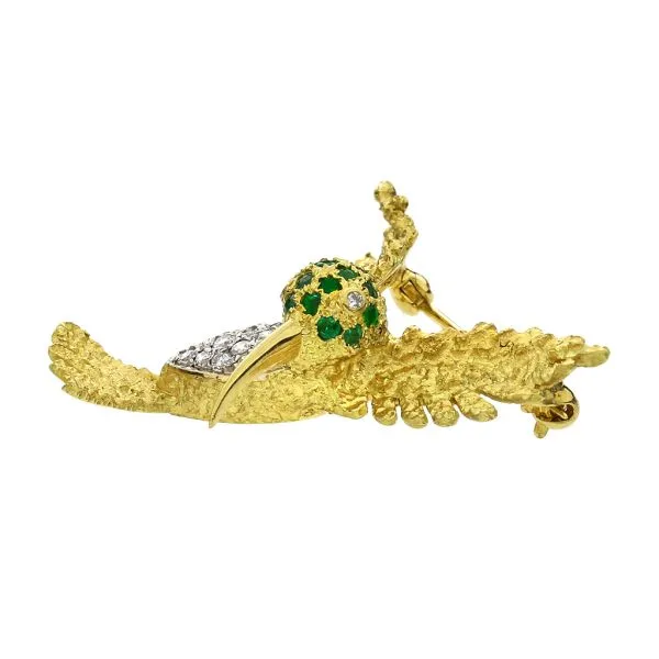 18K Yellow and White Gold Emerald & Natural Diamond Figural Hummingbird Brooch Image 4 Purple Creek Holly Springs, NC