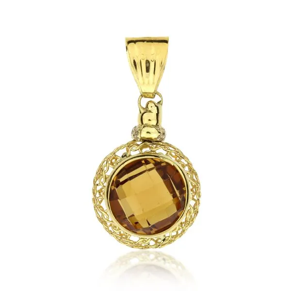 18K Yellow Gold 3.12ct Checkerboard Citrine Pendant Image 2 Purple Creek Holly Springs, NC