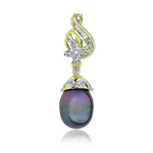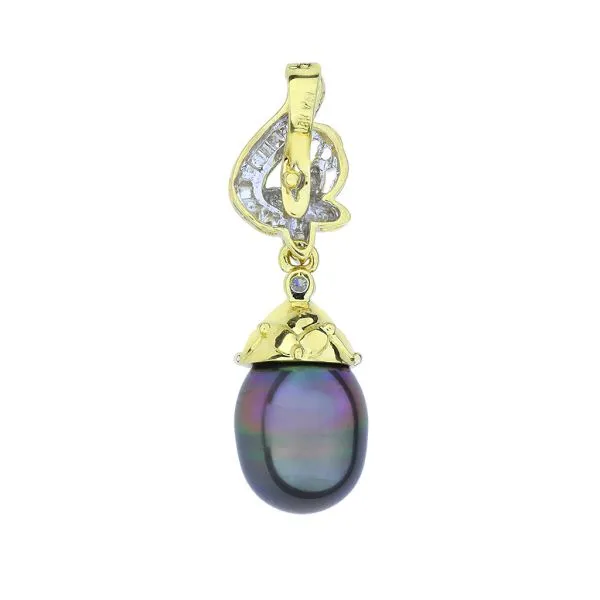 18K Yellow Gold Tahitian Pearl and Natural Diamond Hinged Pendant Purple Creek Holly Springs, NC