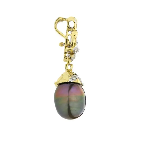 18K Yellow Gold Tahitian Pearl and Natural Diamond Hinged Pendant Image 3 Purple Creek Holly Springs, NC