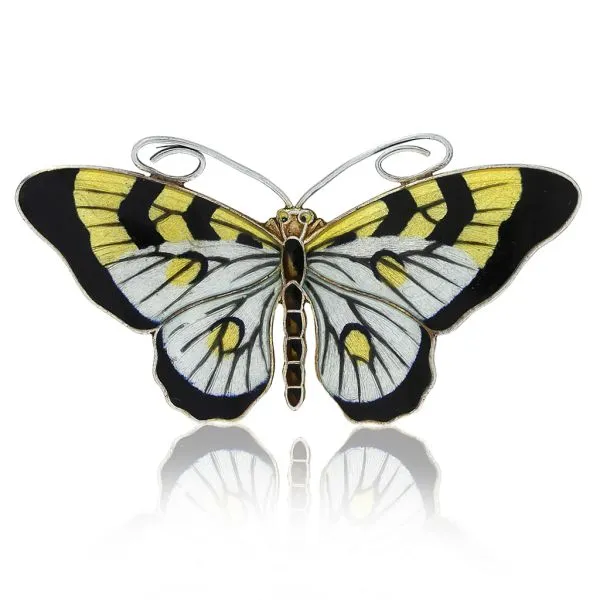 Antique Marius Hammer Norway 930 Silver Guilloche Enamel Butterfly Brooch