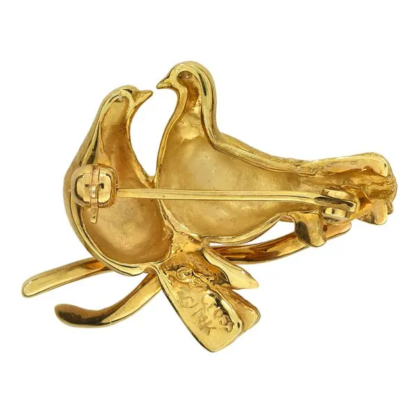 Cross 14K Yellow Gold Figural ÒSoul MateÓ Doves with Diamond Eyes Brooch Image 3 Purple Creek Holly Springs, NC